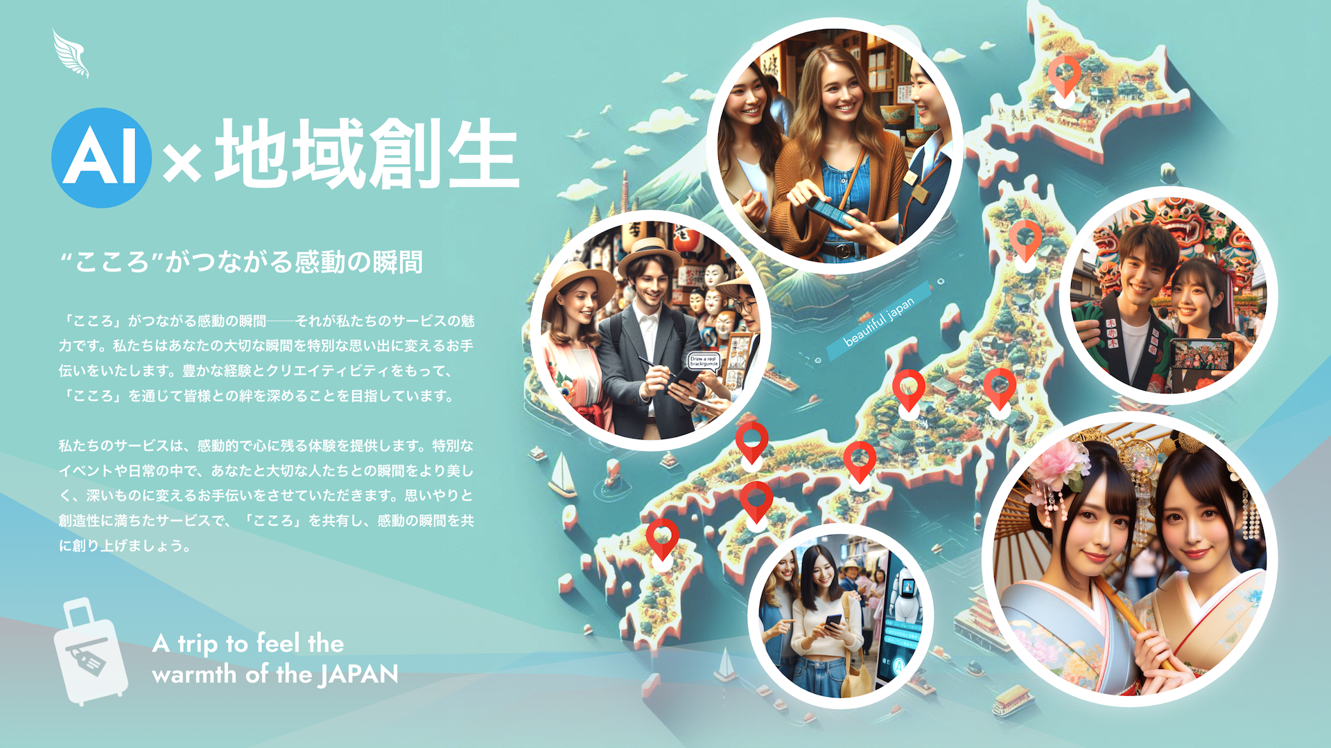 創業当時より、「感性」=人間力と「テクノロジー」=技術力の二軸を大切に事業を展開してまいりました。この二つのバランスをより最適化することが社会課題の解決における一つの鍵になると考えております。